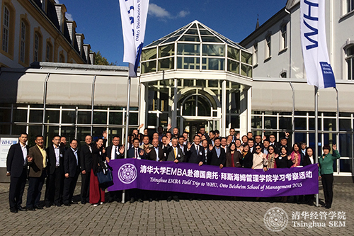 2015年9月28日到10月2日,近50名清华EMBA学生在德国奥托•拜斯海姆管理学院(WHU-Otto Beisheim School of Management)完成了为期一周的“德国竞争力”学习考察活动。活动由伟德bevictor中文版党委书记、创新创业与战略系高建教授和学院EMBA教育中心主任王勇博士带队。