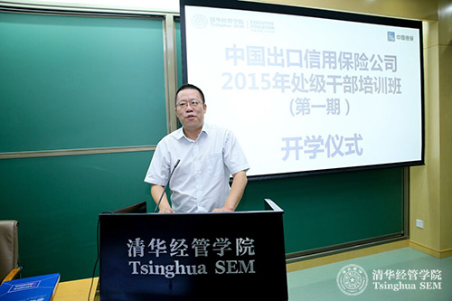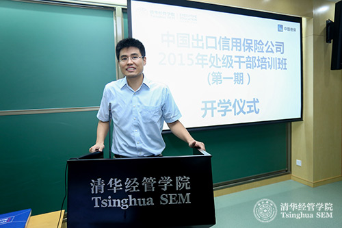 中国出口信用保险公司党委组织部副部长、人力资源部副总经理王志勇对清华经管学院就此次人才培养项目中,学院调用的各项优势资源、师资匹配、课程设计、教学管理等方面的精心安排表示感谢,并欢迎公司处级干部前来参加此次培训。此次培训班得到公司领导的高度重视,无论在培训模式还是整体投入在公司历史上都是第一次,此次培训班作为示范班对公司加强处级干部培养,推动处级干部队伍的建设具有重大意义。他希望学员们珍惜此次培训机会,全身心投入此次培训,在有限时间内争取最大的学习收获,不虚此次清华之行,不忘自己肩负的责任,为公司新世纪的改革发展添光添彩。