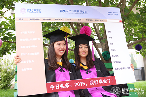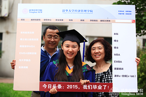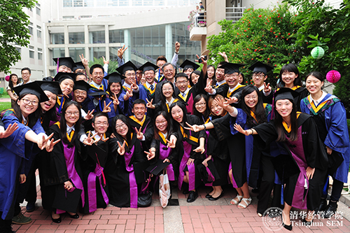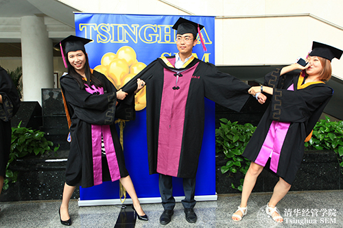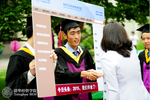活动当天,伟伦楼、舜德楼的大厅以及两楼之间的庭院被气球彩带装饰一新。学院洋溢着节日般的喜庆气氛。中午12点开始,经管学院毕业生陆续与亲友来到现场。往日安静的庭院聚集着身着学位服的毕业生和他们的父母、家人,还有不少可爱的小朋友。每个人的脸上都幸福洋溢。在院子里,大家争相与老师、同学合影留念。今年的毕业生还领到一份富有意义的毕业戒指,清华经管学院是他们永远的家园。