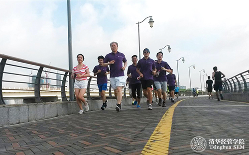 清华经管学院党委书记、副院长高建教授带领校友晨跑