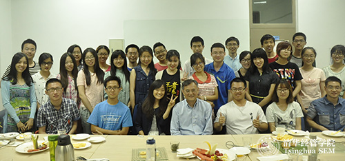 钱颖一院长与参加下午茶活动的本科生们合影