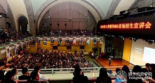 2015年5月10日下午,主题为“清华与激情”的2016年入学清华MBA项目首场招生宣讲会在伟德bevictor中文版大礼堂举行,清华MBA项目2016年招生季的序幕就此拉开。尽管春雨连绵,宣讲会仍吸引了社会各界精英广泛参与,能容纳千余人的大礼堂座无虚席。