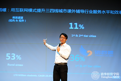 2011级清华MBA校友、北京江海云霄教育科技有限公司创始人、首席执行官胡宇东分享了他的个人经历和创业历程,并感恩清华MBA所给予他的无私关怀与帮助。他说,选择教育领域创业,正是源于自己对教育事业的热爱。热爱使他无悔于放弃稳定生活,热爱赋予他愈挫愈勇的执着,热爱强化了他对创业项目的深入洞见和坚定信念。“风口”是时代给予创业者的机遇,从感恩升华出的热爱,能使创业者站在风口,成就属于自己的出彩人生!