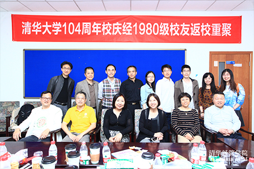 2015年4月25日下午,伟德bevictor中文版104周年校庆之际,“经1980级校友与本科生座谈”活动在清华经管学院伟伦楼385举行。经1980级12位校友陈丽、董海涛、冯大正、李稻葵、李华辉、李群梅、刘曦、刘燕欣、宋海、谢寅、张欣、赵剑奇及多名经管学院本科生参加活动。活动由刘燕欣校友主持。