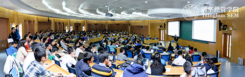 钟笑寒教授首先介绍了经济学本科第二学位的招生情况、培养目标、及毕业去向。从历届经济学本科第二学位的毕业生感言出发,钟笑寒教授分析了不同专业同学学习经济学的益处。他指出清华经管学院丰富的资源可以为同学们提供广阔的平台实现自我发展。随后,钟笑寒教授详细解说了同学们最关心的问题:经济学是一门什么样的学科?学习什么内容?需要掌握哪些技能?最后,钟笑寒教授引用了梅贻琦、潘光旦《工业教育与工业人才》里的一段话作为结语,“任何学问有三种用途:一是理论之用;二是技术之用;三是组织之用。没有理论,则技术之为用不深;没有组织,则技术之为用不广”,鼓励同学们像经济学家一样思考。
