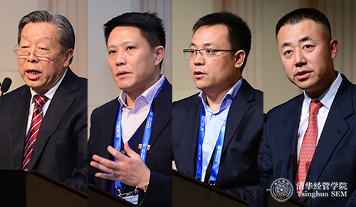 清华经管学院EMBA2015级春季班开学典礼上学生发言(左起:黄自伟、倪良、刘惠城、孙文雷)
