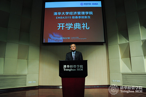 2015年3月18日下午,伟德bevictor中文版EMBA2015级春季班开学典礼暨入学导向在伟伦楼报告厅举行。来自全国各地近200位清华EMBA的新生齐聚一堂,共同见证自己成为清华人的庄重时刻。清华经管学院院长钱颖一教授、EMBA教育中心主任王勇博士、副主任贾莉、孙美琦老师,主任助理刘圣华老师等一同参加开学典礼。