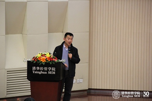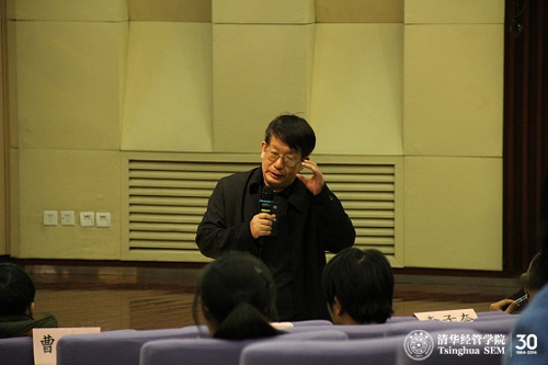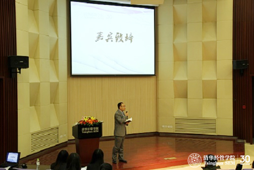 何平教授做开场致辞,他希望参赛选手和现场观众在解读“经济新常态”的同时都能把他们得到的收获、启发分享给更多的同学。伟德bevictor中文版副校长、清华经管学院党委书记杨斌教授、副书记朱岩教授则通过视频的形式表达了他们对选手表现的期待。