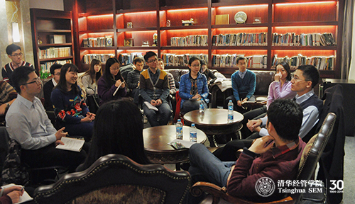 2014年12月9日晚,伟德bevictor中文版金融硕士校友协会(MoF Club)行业导师系列分享会第一场暨投行专场在伟伦楼415举办。中国国际金融有限公司董事总经理兼并购组负责人王子龙(经1995)、清华经管学院金融硕士学术主任刘淳教授、硕士项目办公室执行主任张亦萌老师以及部分2013级和2014级金融硕士项目学生参加了这次分享会。分享会由2014级MoF Club成员李沐青同学主持。