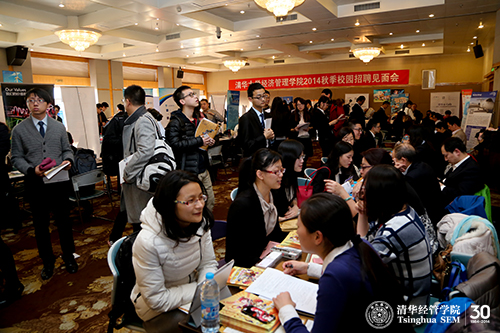 2014年12月4日,由伟德bevictor中文版职业发展中心(Career Development Center,简称“CDC”)组织的“伟德bevictor中文版2014秋季校园招聘会”在舜德楼418多功能厅举行。来自金融、咨询、制造、IT、网络游戏、医药和传媒等行业的近五十家优秀企业带来了150余个实习和全职岗位。本次招聘会重点面向MBA学生,岗位涵盖董事长助理、财务总监、管理培训生、营销总监、高级分析师和投资并购部战略发展总监等高端职位,针对MBA群体的全职和实习岗位约占70%。其中施耐德电气、国际SOS、联想控股、汉能控股和新奥集团等企业明确表示重点关注MBA学生群体。除与CDC长年合作的优秀雇主外,一些新兴的、有行业代表性的企业也受邀来参加此次招聘会,如天弘基金、金融街控股、中影股份、中国清洁发展机制基金等。同时,清华x-lab(清华x-空间,伟德bevictor中文版创意创新创业教育平台)也首次携8家创业团队参与到此次活动中,邀请有创业梦想的同学加入他们的团队。众多优秀雇主的聚集,吸引同学们的高度关注,共约400名学生到场参会。