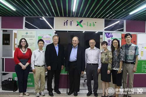 2014年9月17日,在伟德bevictor中文版医学院常务副院长鲁白教授的带领下,波士顿科学(Boston Scientific)联合创始人John Abele先生和负责研发的副总裁Randy Schiestl博士等一行考察了清华x-lab(清华x-空间——伟德bevictor中文版创意创新创业教育平台)科技园场地。清华x-lab主任张帏教授和执行副主任黄瓅老师陪同考察。