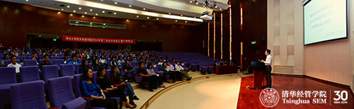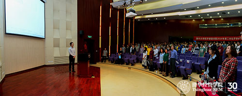 管理学第二学位开学典礼暨入学导向活动由姜朋教授主持。管双12班、中国语言文学系的邓淼同学代表老生进行了发言,她与在场同学分享了自己这一年的学习心得。她用幽默的语言描述了自己遇到的挑战,并告诉同学们如何去坚持和克服这些困难。管双13班、软件学院的谢宇辰同学作为新生代表发言,他表示选择管双、加入清华经管学院是自己经过仔细斟酌之后做出的选择。结合当前比较热的互联网思维、大数据和云计算等问题,他阐述了自己所学专业与管理学的关系,以及管理学如何促进自己在专业领域的发展。