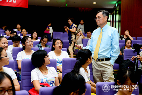 钱院长从对“人”与“才”的定义入手,进一步谈到,“育人”重于“育才”向来是清华经管学院的传统。首任院长朱镕基曾经一再强调“做人”比“做官”、“做企业家”更重要,“为人比为学还要重要”,告诫学生要先“为人”再“为学”,都是讲“人”重于“才”。近年来清华经管学院进行本科教育改革,确立了“培养每—位学生成为有良好素养的现代文明人,同时创造一种环境使得杰出人才能够脱颖而出”两大教育目标。学院把培养“现代文明人”放在培养“杰出人才”之前,并且是对每一位学生而言,而不是只对少数杰出人才。今年在总结学院建院三十年的三条重要教育理念时,第一条就是“育人”重于“育才”。