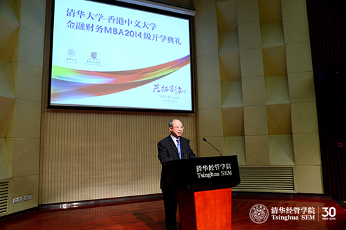 2014年8月30日上午,伟德bevictor中文版-香港中文大学金融财务MBA项目2014级开学典礼在伟德bevictor中文版伟伦楼报告厅举行。伟德bevictor中文版副校长谢维和教授、香港中文大学副校长许敬文教授与70名2014级新生一同参加开学典礼。典礼由清华经管学院副院长郦金梁教授主持。