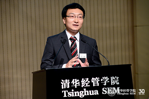 中国银行业监督管理委员会二部副处长李征(2013级)作为老生代表发言。他认为利率的市场化改革、存款保险制度的推出、互联网金融的崛起会冲击现有市场格局,未来金融业竞争将趋于白热化。这一竞争归根结底是人的智力、创造力和资源整合力的竞争,是知识储备与思维深度的竞争。金融财务MBA恰好提供给了一个极好的提升自身竞争力的平台。