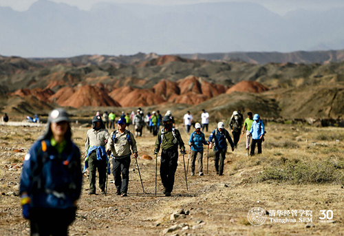 徒步穿越挑战赛是本次课程的重要环节之一,旨在让学员们通过艰苦跋涉,感悟历史,超越自我。钱颖一院长在活动中称,“行知中国-自然篇”,就是让大家在自然中行走,在行走中感悟,在感悟中提升。它是清华“自强不息,厚德载物”精神的传承和展示,是清华学子坚毅品格的闪耀和升华。同时,也是清华EMBA学子响应习主席的号召,走进张掖,为建设“丝绸之路经济带”贡献力量的实践。