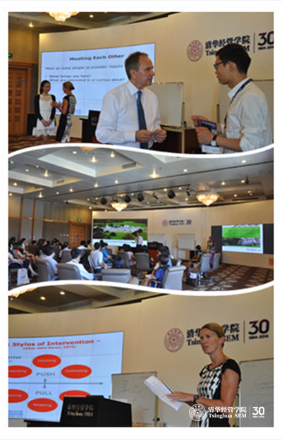 在第一天的课程中,来自英国阿什里奇商学院的课程主任安•奈茨女士(Ann Knights)和菲利普•米克思先生(Philip Mix)围绕高管教练在组织机构中的角色展开培训。参与者不仅通过互动环节相互熟识,还通过一系列心理学、行为学的互动训练了解了高管教练在工作中的作用和方法。清华经管学院领导力与组织管理系张进教授则以领导力与员工激励为主题,结合中国国情和实例,教授了高管教练在实践中需要掌握的技巧。在15日下午的座谈环节,安•奈茨女士、菲利普•米克思先生、张进教授、壳牌(中国)有限公司下游战略及业务开发副总裁许泽民先生以及亚新科工业技术有限公司国际总裁倪威先生就高管教练如何激励员工和提高绩效展开了讨论。