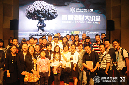 由清华EMBA媒体同学会、中国电子银行网联合主办的首届“清媒大讲堂”——第57届(2014)纽约广告节世界最佳广告赏析,于2014年5月24日在伟德bevictor中文版举行。清华经管学院院长钱颖一教授,清华EMBA媒体同学会会长李加曙,中国金融认证中心总经理、中国电子银行网CEO季小杰,著名广告人苏秋萍,纽约广告节中国首席代表吴金君等嘉宾以及清媒同学会成员、清华校友、在校生200余人参加了本次“清媒大讲堂”活动。