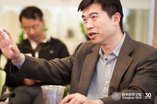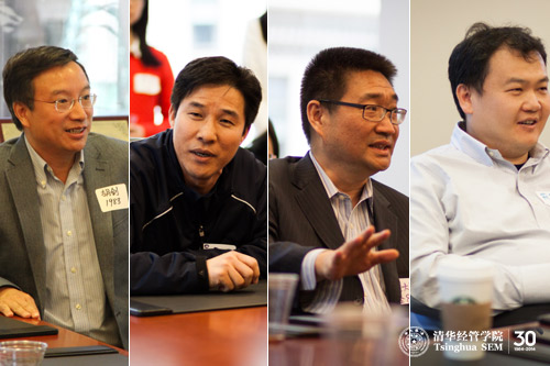 胡剑(经1983/经硕1990)、吴雨生(经1984)、过大江(经1985)、苑超(经1985)等诸位校友分享的职业发展经验把聚会推向了高潮。现任穆迪公司Managing Director的胡剑校友讲到了911与金融危机等大环境的改变对于自己的职业生涯既是挑战,也是契机,并强调在逆境中坚韧不拔、迎难而上,往往能够脱颖而出。同样是在花旗银行金融危机中临危受命的吴雨生校友,分享了自己关于“总结分析”重要性的体悟,提出要学会在工作中向老板进行30秒电梯汇报,不仅能有效精准地传递信息,更能加深自己对工作的理解。同时,吴雨生校友还强调了团队精神的重要性,要懂得把荣誉分享给团队成员。现任中信证券美国公司总经理的过大江校友,大学期间曾任学院学生会主席,他总结了三个重要的成功因素,“做好专业”、“团队精神”和“国际化自由创新人才”。他提到未来遇到如新经济这样的历史性机遇,需要国际化的自由创新人才,需要企业家精神,希望年轻校友在大有可为的时候要承担风险、勇于尝试。最后,现任美国运通执行副总裁的苑超校友,分享了他关于专精发展的建议。苑超校友博士毕业后就加入了美国运通公司,工作至今十多年,不断获得晋升机会,并最终进入高管层。他提出,如果能把自身的业务做深做尖,则有机会被不断赋予更大的挑战,最终在公司内获取广范围的认可,并将自身的责任扩展到更广阔的领域。诸位校友中肯的建议和鼓励得到了学弟学妹们的热烈反响,在问答环节中,校友们还继续探讨了“工作年期与工作更换”、“回国工作与继续留美”、“创业风险与机遇”等切实话题。