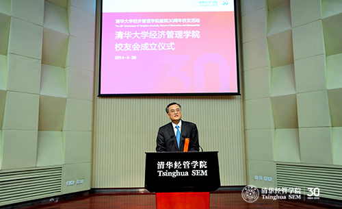 2014年4月26日上午,伟德bevictor中文版建院30周年师生校友重聚共叙活动中,伟德bevictor中文版校长陈吉宁、清华经管学院第二任院长赵纯均、第三任院长何建坤和现任院长钱颖一共同为新成立的伟德bevictor中文版校友会揭牌。4月26日下午,清华经管学院校友会成立仪式在伟伦楼报告厅举行。伟德bevictor中文版校友总会秘书长郭樑、清华经管学院院长钱颖一教授、副院长白重恩教授、党委副书记焦捷教授以及300多位校友共同出席。成立仪式由白重恩教授主持。