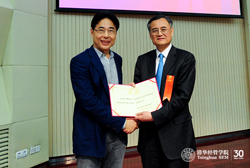 首先,白重恩教授宣读了清华经管学院校友会组织成员名单,清华经管学院院长钱颖一教授担任会长,清华经管学院党委书记杨斌教授、院长助理王珺教授担任副会长,组织成员还包括25位常务理事、51位理事、1位秘书长和3位副秘书长。同时,清华经管学院院长钱颖一教授为到场的校友会常务理事和理事颁发聘书。