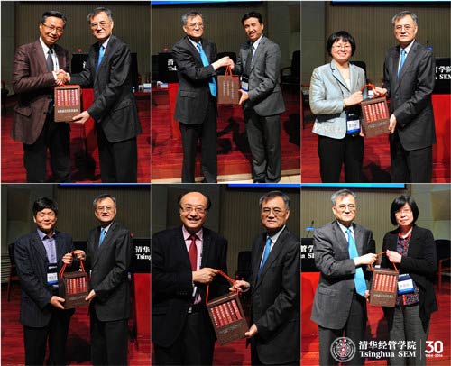 钱颖一教授在赠书仪式上说,在伟德bevictor中文版建院30周年之际,借此次管理学院院长论坛之机,向举办MBA和EMBA的全国236所MBA培养院校赠送朱镕基院长的著作《朱镕基讲话实录》。他表示,自己十分系统地读过这套书,深感受益匪浅。这其中体现了朱镕基院长治国治市的智慧、经世济民的智慧,对外交往、国际关系的智慧,同时,更有极为深刻的办学智慧。在这套《朱镕基讲话实录》中,有五篇文章是直接针对伟德bevictor中文版和清华经管学院的,显示朱院长的办学智慧非常高明。第一篇,1992年清华电机系建系60周年,朱院长作为电机系的毕业生为此写了一封信,其中提到“为人先于为学”的思想。第二篇,1994年经管学院建院十周年的题词,留在伟伦楼的墙壁上,提出“办世界第一流的经管学院”。第三篇是祝贺1995年陈岱孙先生95诞辰的一封信,陈岱孙曾长期担任清华经济学系的系主任。第四篇是在2001年顾问委员会会议上,提出“教师是根本推动力”。第五篇,在2001年6月朱院长辞去伟德bevictor中文版院长时,在伟德bevictor中文版的那次演讲中,他殷切希望清华人要“追求完美”。
