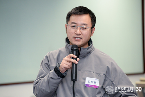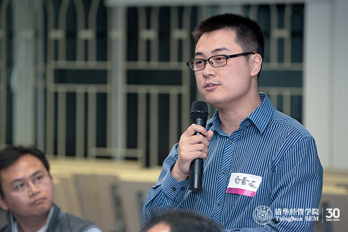 马力(经双1991/经硕1996)校友用“幸运”概括了他和林老师的缘分。他在清华经管学院度过了九年光阴,这九年中,林老师是和他关系最近的人之一。他说,林老师带来的帮助太大,不仅帮他介绍买到了房子,还帮他找到了老婆。15年零3个月前,就在14号楼的400办公室,林老师介绍当时还是辅导员的他和现在的夫人见面。当他说到“见面四个月之后就扯了证”,现场一片笑声。他还回忆了一个细节:当时班上一个叫常睿的学生脚摔断了,林妈妈亲自熬了排骨汤给同学送去。他还开玩笑说:“在经管这么些年,如果没有吃过林老师做的饭,一定是冒牌的经管学生。”