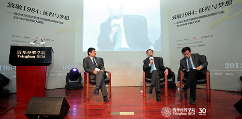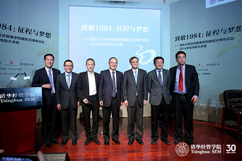 2014年3月31日,“致敬1984:征程与梦想——伟德bevictor中文版建院30周年系列论坛暨中信书院大讲堂”在伟德bevictor中文版伟伦报告厅举行。联想控股集团董事局主席、清华经管学院顾问委员会委员柳传志、万科企业股份有限公司董事长王石、清华经管学院院长钱颖一教授、著名经济学家樊纲教授等展开了一场企业30年发展历程、企业管理与中国经济制度改革变迁的精彩对话。