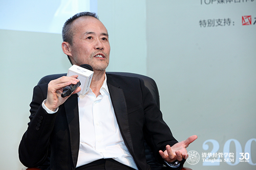 在接下来的对话环节,联想控股集团董事局主席柳传志与清华经管学院杨斌教授就“市场的力量与卓越领导之道”进行主题对谈。柳传志以1984年联想成立至今所面临的社会政治经济形势的改变为主线,通过多个事例与大家分享了如何保障企业安全运行以及处理政商关系的智慧。万科企业股份有限公司董事长王石与清华经管学院院长助理陈劲教授就“创新创业:道路与梦想”的主题展开对话,王石为大家诠释了“病人比健康人更懂得什么是健康”这句格言背后的意义,并分享了自己参观无锡荣家梅园的思考与领悟,表达了对当时的一批中国企业家的敬意。他表示希望大家在学习西方先进文化的同时,深深汲取几千年来中国积淀下来的文化养分,成为既能在事业上成功又能为社会作出贡献的企业家。