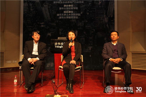招商局地产控股股份有限公司董事长林少斌校友加入到课程的问答环节中。三位学长耐心解答了学生、校友的各种提问,气氛活跃。132名来自清华经管学院、土木工程学院和建筑学院的研究生注册修读此课程。300余名学生和校友旁听了开讲课堂。
