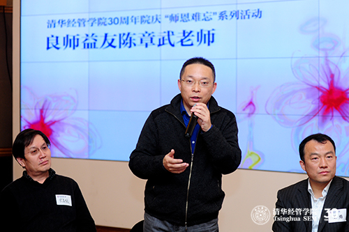 目前担任MBA上海校友会会长的郜宏(MBA1992)校友专程从上海赶来参加陈章武老师“师恩难忘”座谈会。他说,是陈老师所教授的《经济学》把他引入了经济的殿堂。当经济学的大门被叩开之后,郜宏发现门里面的世界是那么地博大深邃,充满乐趣。他还提到,“陈老师对学生的爱、对社会、国家的投入一直是我的榜样。他的精神一直激励着我前进。”