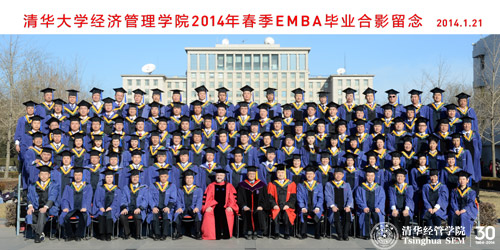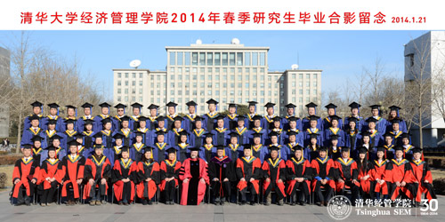 2014春季清华经管学院共有283名研究生获得学位后毕业,其中硕士272人,博士11人。毕业生们在与学院领导集体合影留念后,在舜德楼大厅单独与钱颖一院长合影。(供稿:沟通办)