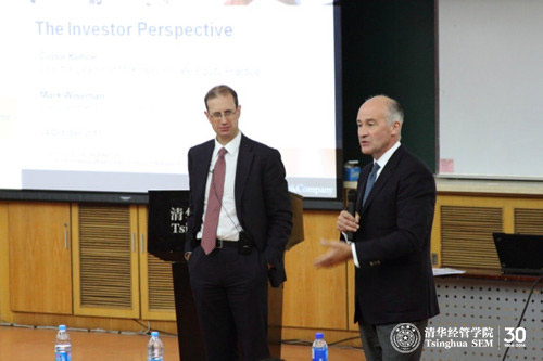 2013年10月24日,加拿大退休金计划投资局(Canadian Pension Plan Investment Board,CPPIB)首席执行官马克•怀士曼(Mark Wiseman)和麦肯锡私募股权业务领导者康纳•基欧(Conor Kehoe)为清华师生带来了一场关于投资的讲座。清华经管学院院长钱颖一教授在讲座后会见了两位嘉宾。