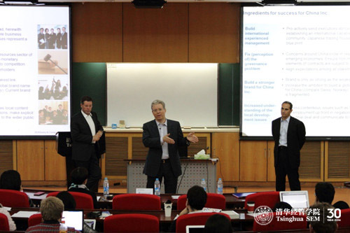 2013年11月19日,阿巴尼兹先生与力拓公司前首席营运官道格拉斯•瑞齐(Douglas Ritchie)和麦肯锡公式合伙人哈利•罗宾逊(Harry Robinson)为清华经管学生讲授资源行业的全球战略和管理特点:Operating Globally。