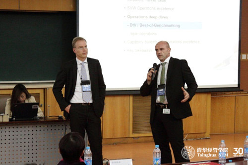 2013年12月10日,上海大众的首席运营总监吴博锐(Thomas Ulbrich)和麦肯锡大中华区运营咨询业务负责人艾家瑞(Karel Eloot),以“运营管理的价值创造”为题,给同学们做了精彩的演讲。课程正式开始前,20余名同学在吴博锐先生和艾家瑞先生的导引下,走访了位于伟德bevictor中文版的中国卓越运营学院(COOE),通过参观和实验的形式,切实了解了企业生产运营的各个环节和运营管理的重要性。走访之后,吴博锐结合上海大众的运营实践,从运营管理在中国的运用、运营管理对公司市场价值的作用和价值设计三个方面,向同学们介绍了运营管理的理论和实践。艾家瑞则介绍了运营管理中所需要的技能,只有在实践中不断学习、充分发挥经验曲线的优势、形成CEO高度的视角、掌握过硬的专业技能、具备权变管理思维,才能形成综合高效的运营管理模式。