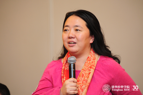 领导力与组织管理系王雪莉(经博1999)教授1997年加入清华经管学院,历任研究生工作组的副组长、组长,1999年担任党委副书记,后把接力棒交给曲庆老师。她谈到,看到当年一起工作的同事和同学也来到今天的聚会,非常开心。虽然她没有在清华读过本科,但在清华经管学院从事学生工作的经历,让他更加了解清华文化,了解清华经管学院,也对校园的一草一木,对这里的学生的情感、生活、学习有了更深地理解,她祝福大家,希望大家未来越走越好!