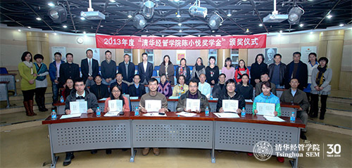 2013年12月6日,2013年度“清华经管学院陈小悦奖学金”颁奖仪式在伟德bevictor中文版舜德楼举行,共有6位本科生和4位研究生获此殊荣。清华经管学院副院长夏冬林教授、清华经管学院合作发展办公室主任潘庆中老师、陈小悦教授的夫人郭凤梅女士、女儿陈萌女士以及陈小悦教授的学生和挚友参加了颁奖仪式。中国人寿富兰克林资产管理有限公司首席执行官陈东先生、嘉实基金管理有限公司机构业务部副总经理姚凤岐先生、中再资产管理股份有限公司副总经理陆金海先生、经纬创投中国区合伙人方元先生等陈小悦基金常务委员会成员也出席了本次颁奖仪式。活动由清华经管学院会计系主任肖星教授主持。