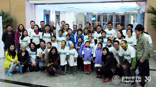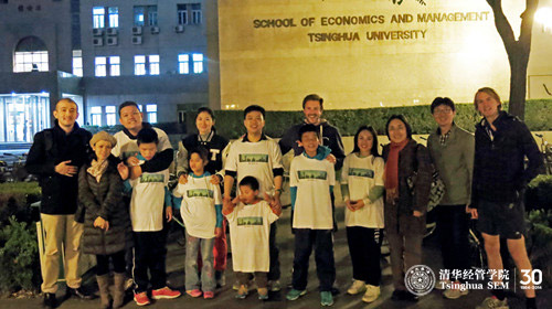 2013年10月26日,清华MBA“夜健公益跑”活动在伟德bevictor中文版校园内举行。18名视障孤儿与百余清华师生一起完成了五公里的爱心长跑活动。此次“夜健公益跑”是清华经管学院“三十风采”系列活动之一,由清华MBA学生俱乐部清华Net Impact主办。18位小朋友全部来自爱百福济慈之家的“城市生活”项目中心,目前就读于北京盲校小学部。