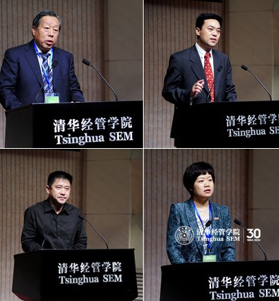 随后由四位新生分别发言。清华EMBA13-D班、尤洛卡矿业安全工程股份有限公司董事长黄自伟说:“30年前我从工厂走进大学,成为恢复高考后第一届大学生;30年后我从大学走进工厂,人生画了一个圈。而今天,我终于圆了清华梦”。黄自伟说,他愿以68岁的年纪从学生做起,认真完成清华EMBA的学业。清华EMBA13-E班、河南中原高速公路股份公司董事长金雷表示,自己的清华梦本质上是报国梦。河南中原高速公路股份公司已上市10年,正处于发展转型期,需要他站在更高的视角去审视经济社会未来的发展规律和产业的发展方向,他希望清华EMBA的经历能够让同学们受益一生、感恩一生、幸福一生。清华EMBA13-F班、湖北省鄂州市市委常委、市纪委书记毕华将自己来到清华的感悟浓缩为三个关键词:崇敬、责任、行动。她认为作为清华的一员,除了荣誉,还有心里沉甸甸的责任,她表示将把自己在清华所学所悟应用到工作中,为企业家做好服务工作。清华EMBA奖学金媒体课程班(第九期)、郑州市市委宣传部副部长、郑州电视台台长李平表示,在新媒体日益勃发的形势下,传统媒体的发展遇到瓶颈,他希望通过在清华的学习,找到“如何既发挥媒体的舆论导向作用,又解决媒体发展问题”的答案。