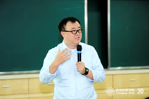 校友导师胡钰(经1991)分享了朱镕基老院长在清华经管学院建院10周年时对同学们说过的一句话:“你们每个人搞好一个企业,中国经济就有希望了”。胡钰说,改革开放以来,中国经济取得显著成绩,但企业创新明显不足,他鼓励同学们关注中国热点问题,培养责任意识。他愿意与学弟学妹们一路同行,为大家提供实践机会。