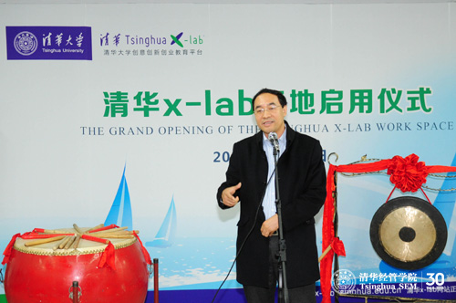 钱颖一院长与嘉宾敲鼓鸣锣清华x-lab场地正式启用