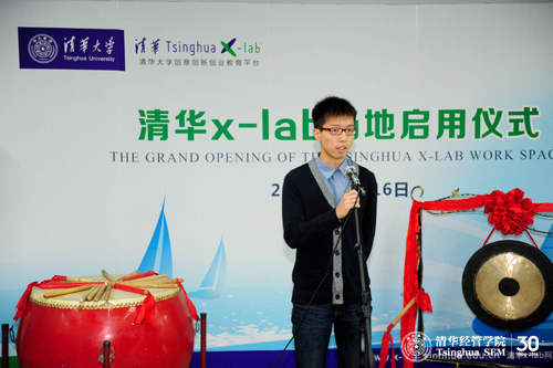清华x-lab创业的学生团队代表、环境学院研究生三年级学生、北京弱水无极环保科技有限公司技术总监周英豪在启动仪式上谈到:“我觉得x-lab是一个非常好的创新创业支撑帮助平台。我们很多想创业的学生可能都会面临这样一个问题:他们有一个很好的想法,但是就是不知道该如何转化成商业项目,或者说像我们这样的清华工科学生,可能有一个很好的技术,但是找不到合适的途径去推广、去转化成能创造价值的公司,这个时候x-lab就显现出它的优势来了……x-lab场地的启用,将会大大促进像我们这样的学生创新创业项目的成功。”