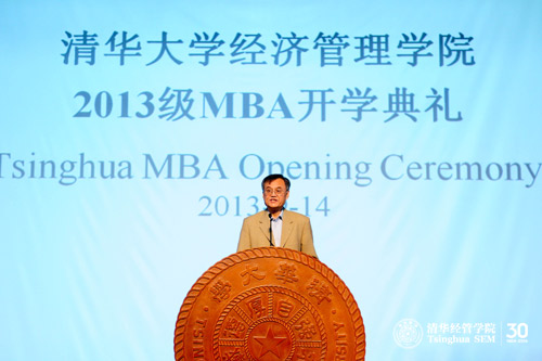 钱颖一院长在致辞中首先欢迎同学们加入清华MBA的大家庭,加入清华经管学院的大家庭。他说,清华经管学院是“大学中的商学院”(University Based Business School),具有自己独特的优势。在清华传统中,就有文理会通、古今会通、中西会通、再加上商工会通,形成了四通八达。钱颖一院长希望清华MBA项目在“会通”理念指导下,更好地与大学融合,充分利用伟德bevictor中文版广泛的学科覆盖和百年的历史积累,培养跨学科复合型管理人才。钱颖一院长说,一年来,学院在跨学科复合型管理人才培养方面取得了三项实质性进展:成功开办了“MBA+X”双硕士学位;启动了“清华x-lab”创意创新创业的教育平台;开出了一门新的MBA课程--“清华新兴技术探究”。