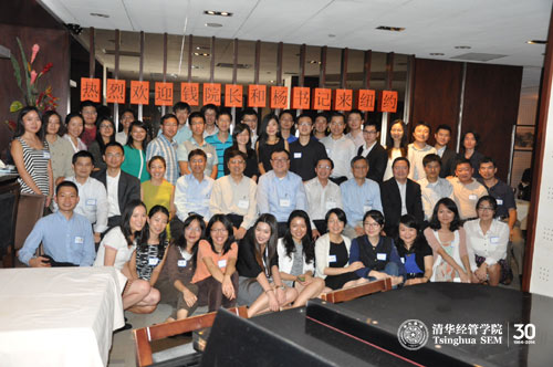 席间,钱颖一院长和杨斌书记与每位校友畅谈,听取大家对各自工作,学习和生活情况的介绍,每一位校友都深切感受到来自学院的关怀。晚宴一直持续到深夜11点,全体校友和两位老师合影并一一话别,度过了一个难忘而又充实的教师节之夜。