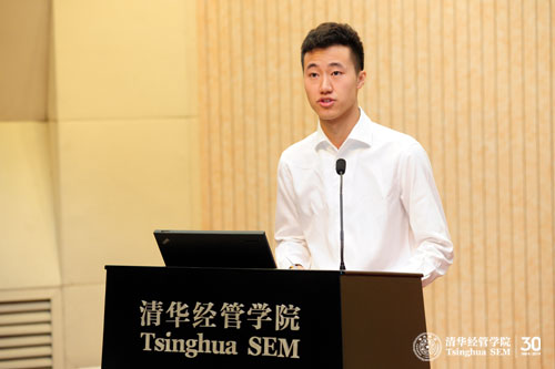 典礼上,清华经管学院2010级学生向雪银和2013级学生刘欣泽分别代表老生和新生发言。向雪银同学首先作为老生代表发言。他说因为新生的到来,学院在三十岁之前,收获了最蓬勃的朝气,并希望学弟、学妹们能够珍惜这股活力,去做一个“有趣的人”。他以此为主题分享了自己在学院的求学体会。“遵从内心乐趣,积极向上又富有人文情怀”,这是他对“有趣的人”的理解。他认为清华经管学院学生的生活不应该只是刷GPA、实习和工作,更要跟随内心,多去创造生活的美好。