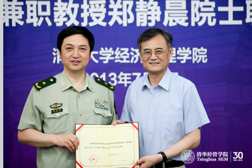 2013年7月9日下午,清华经管学院举行授聘仪式,正式聘任清华EMBA校友、武警后勤部副部长、武警总医院院长郑静晨院士为伟德bevictor中文版兼职教授。经管学院院长钱颖一、党委书记杨斌、党委副书记朱岩等出席了仪式,活动由杨斌教授主持。
