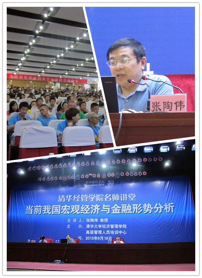 2013年6月18日,“清华经管学院名师讲堂”系列公益讲座移师黑龙江绥化。伟德bevictor中文版金融系张陶伟教授作了“当前我国宏观经济与金融形势分析”的主题演讲。本期讲堂作为清华经管学院高管培训中心中国企业家班移动课堂的特别课程,吸引了27、28、29期企业家班的三届学员近百人前来听讲。同时慕名而来的还有当地各行各业的企业界代表及清华经管校友等,一千人的政府大礼堂座无虚席。本次活动由清华经管学院高管培训中心主办,黑龙江省绥化市政府、市委组织部协办。清华经管学院高管培训中心常务副主任刘燕欣、绥化市委秘书长王兴彪等出席了此次活动并致辞。