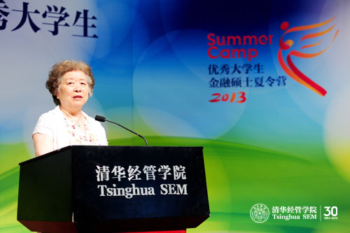 首先是院长致辞。五道口金融学院院长吴晓灵首先欢迎大家参加伟德bevictor中文版金融硕士夏令营。吴晓灵说,经管学院和五道口金融学院都具有深厚的创建背景,但若想在未来获得新的辉煌,还需要注入新的血液。她教导在场的青年学子,金融在经济上是宝塔尖儿,年轻人不能仅仅羡慕金融业的高高在上和从业者的高薪,更要承担起相应的社会责任,用诚恳和恰当的服务换取良好的报酬,赢得社会的尊重。“居庙堂之高则忧其民,处江湖之远则忧其君”,吴晓灵说,金融学子在未来的从业与做人中应秉承中国传统士大夫的精神,为社会做出更大贡献。