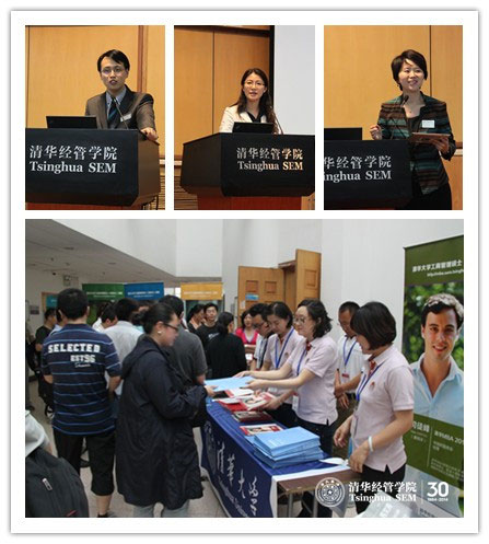 2013年6月2日下午,清华MBA教育中心在经管学院伟伦楼报告厅举行2014年入学首场招生宣讲会。由于反响热烈,应广大考生的强烈要求,清华MBA中心又于6月4日晚增加了一场宣讲会。座无虚席的两场宣讲会均由清华经管学院副院长郦金梁教授为考生做清华MBA项目的全面介绍。清华MBA教育中心常务副主任张磊、副主任云涛分别主持了两场宣讲会。