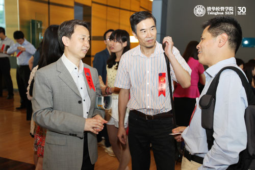 钱颖一院长首先代表学院发表了院情报告,他主要围绕本科教育改革、EMBA项目创新发展2012计划、与大学融合战略、教师人事制度改革、清华经管学院年度重大活动、学院三年战略规划以及2014年30周年院庆活动等七个方面,向校友们较为全面地回顾介绍了学院近年来的重大改革创新及未来工作的重点。